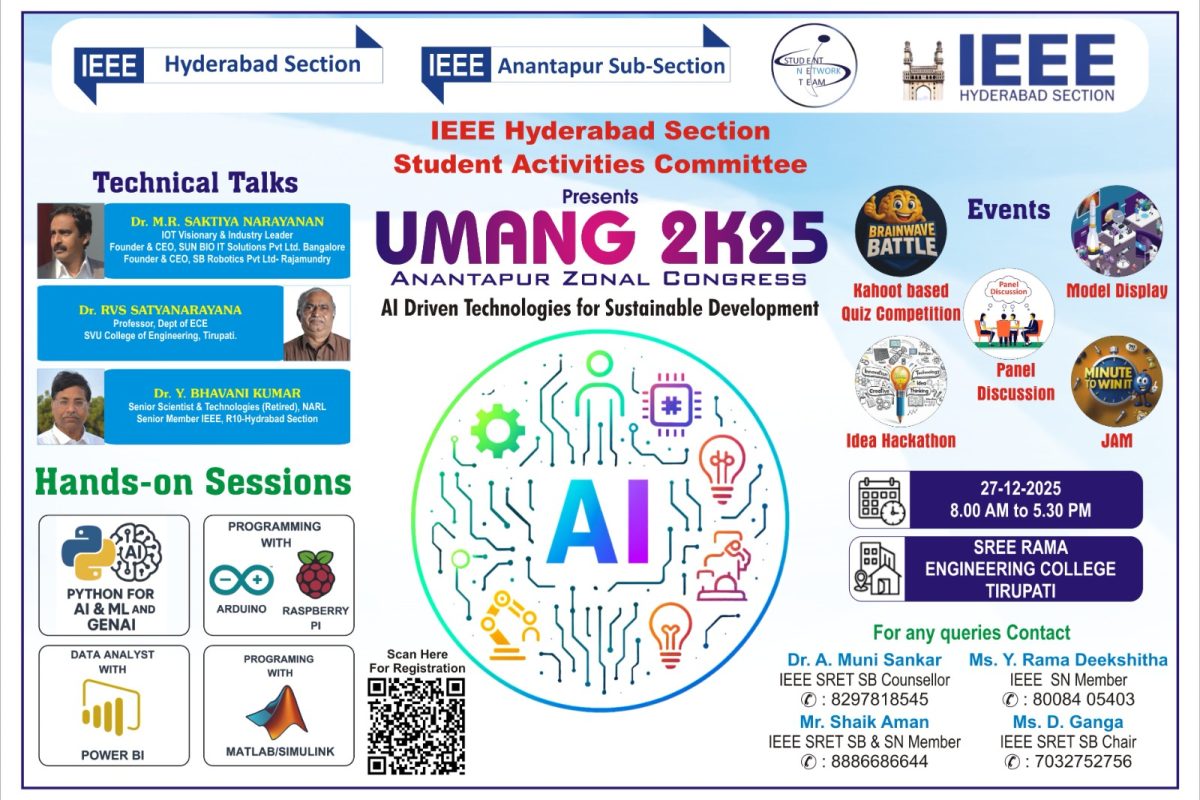 IEEE Hyderabad Section St udent Activities Committee in Association with IEEE Anantapur Subsection proudly invites you to a grand technical congress celebrating innovation, ideas, and future technologies.